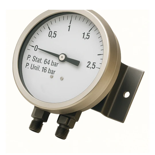 - opzioni su richiesta: scale singole o doppie, contatti elettrici o induttivi, riempimento con liquido ammortizzante, separatori di fluido, trasduttori analogici, attacchi speciali, montaggio su tubo da 2″, indici di minimo/massimo.